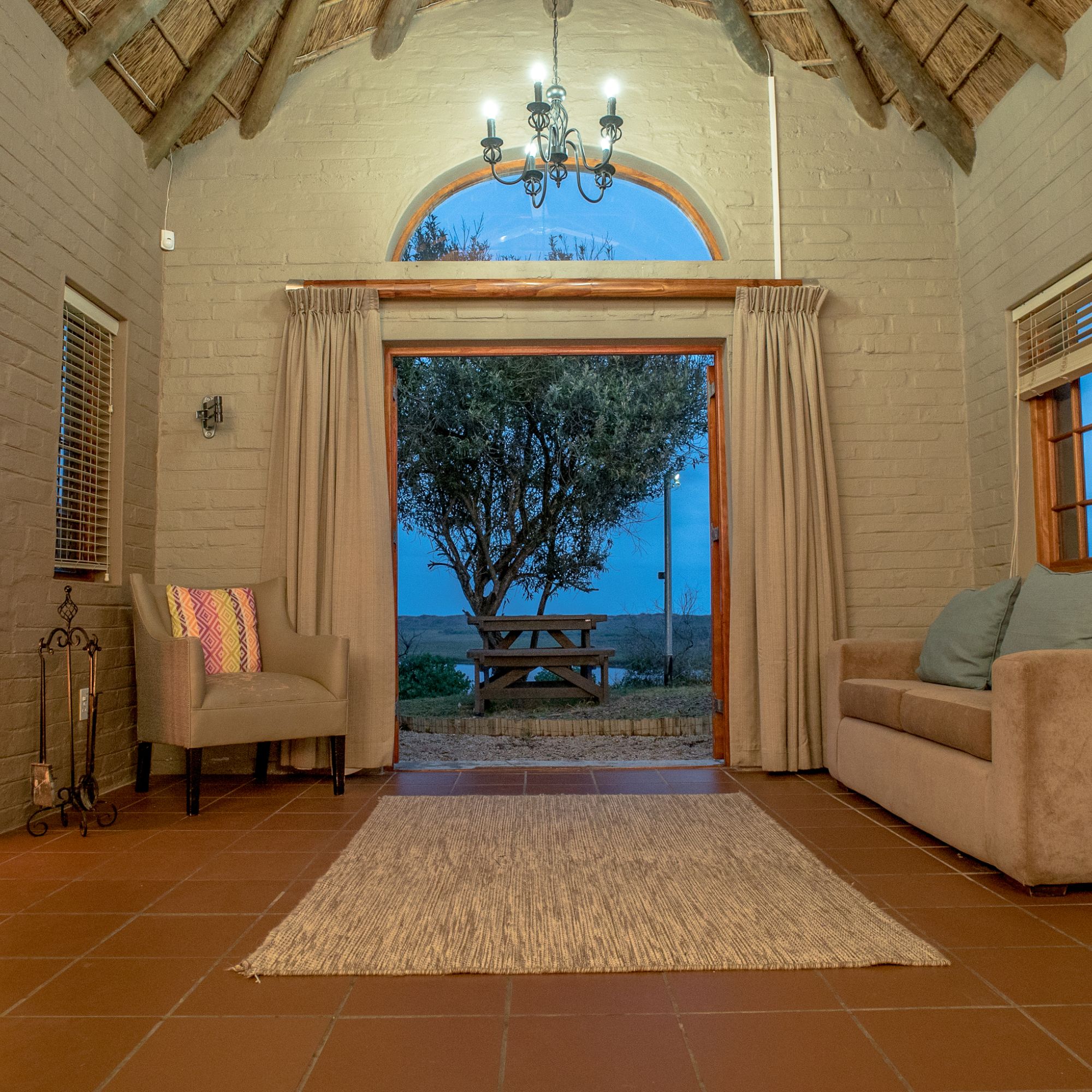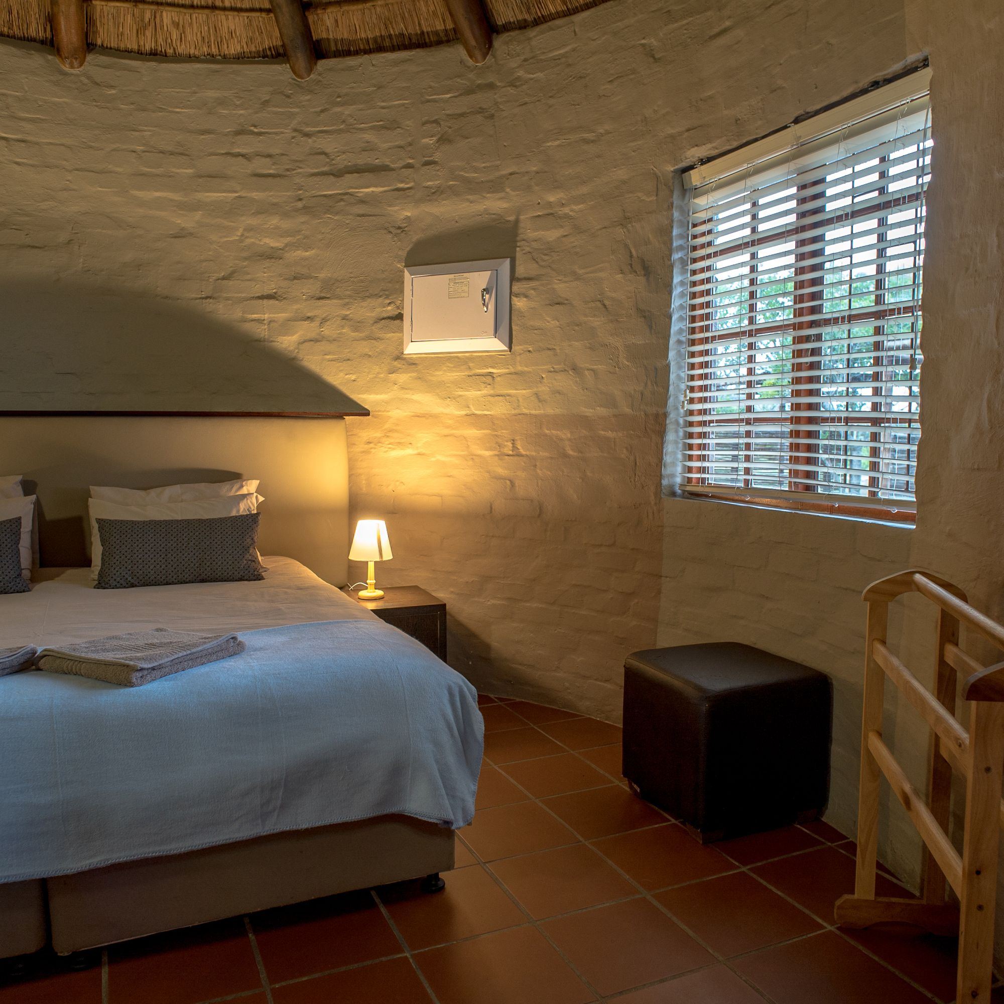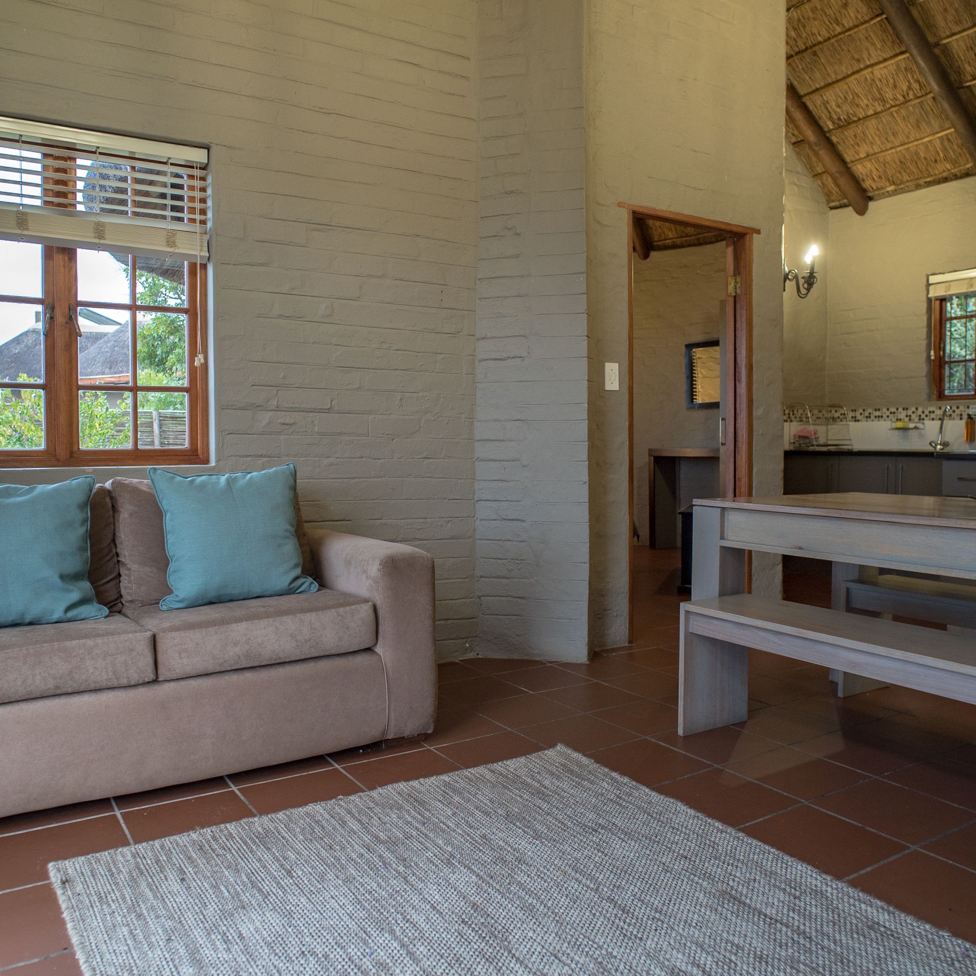 The charming self-catering chalet overlooks the river, offering two bedrooms, sleeping four. The bathroom (shower and toilet) is shared between the two bedrooms. A private braai facility is provided.