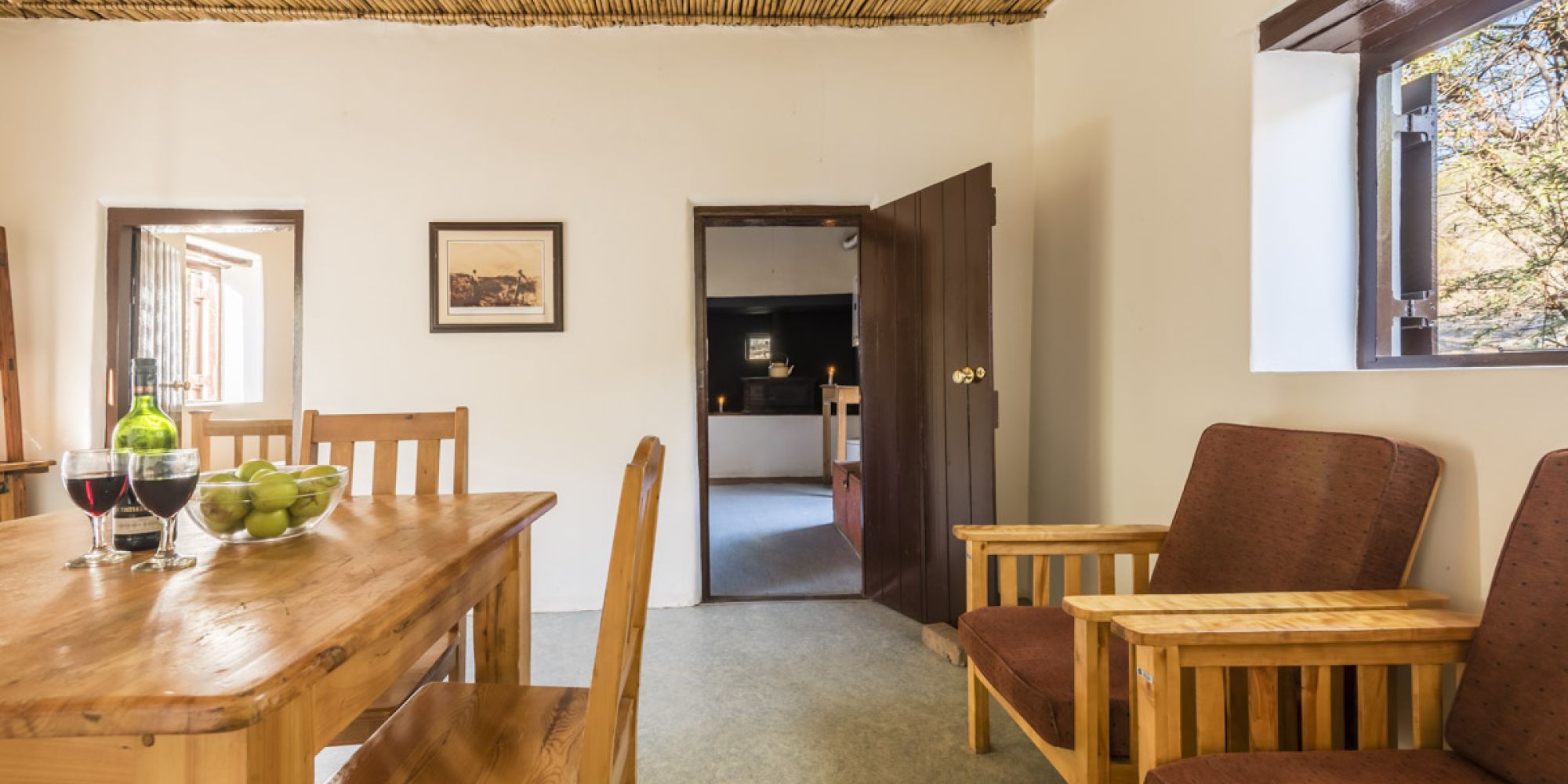 This traditional cottage sleeps up to four people in two bedrooms (one with a double bed and one with two single beds). This cottage is attached to Piet & Bellie and boasts a traditional stepped gable. Outdoor braai facilities are provided and wood can be purchased at the reserve office.