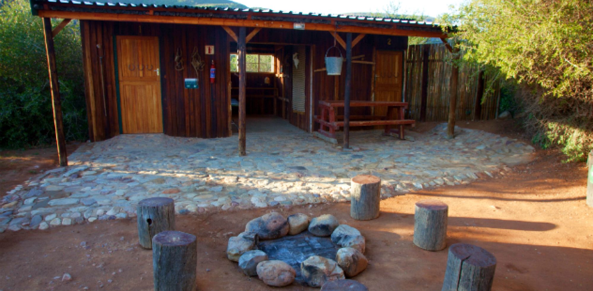 The ideal spot if you don’t want the hassle of pitching your own tent! Each room sleeps four people, each with its own entrance. The stables are available to only one group at a time. Between the two rooms is a kitchen area with a table, chairs, enamel crockery,cutlery, 2-plate gas stove and a solar fridge. A sheltered lapa/braai area is situated just in front of the stables.Includes electricity and water on tap, but remember to bring your torches.