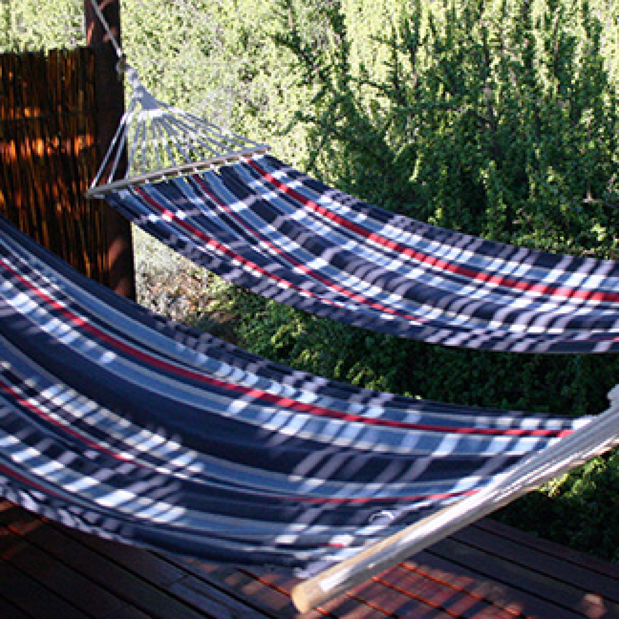 Enjoy a beautiful sunset at your private gazebo equipped with hammocks and benches. The lodge boasts an eco-splash pool, shaded deck, and lapa and braai area. Come and soak up the peace!