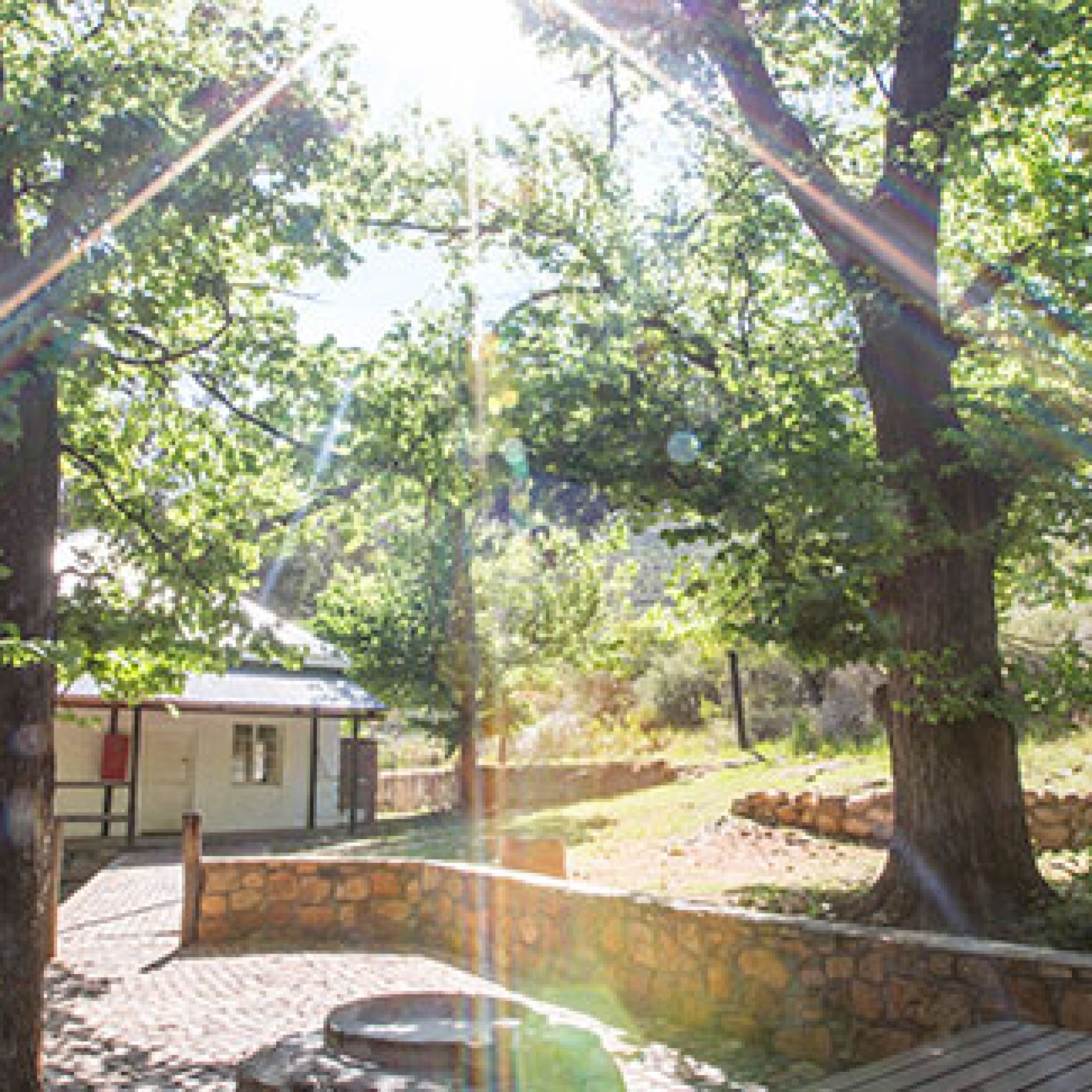 Uitkyk, the largest cottage, has majestic mountain views. It accommodates eight people in three separate rooms. Please note that one bedroom can only be accessed via one of the other bedrooms. The cottage has an indoor fireplace and outdoor braai facilities. Lights are solar powered, but there are no electrical plug points available. It is about 5km from the Algeria office.