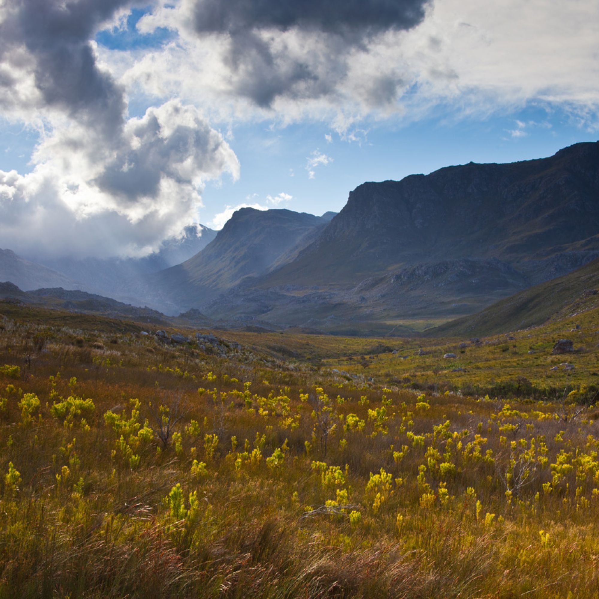 Kogelberg Nature Reserve is often considered the heart of the Cape Floral Kingdom because of the exceptional quality of its fynbos. The reserve lies within the southern stretch of the rugged Hottentots Holland mountain range and has remained relatively isolated and remarkably unspoilt. Its high mountain peaks, steep kloofs, valleys and several tributaries of the pristine Palmiet River create a sense of remote wilderness.