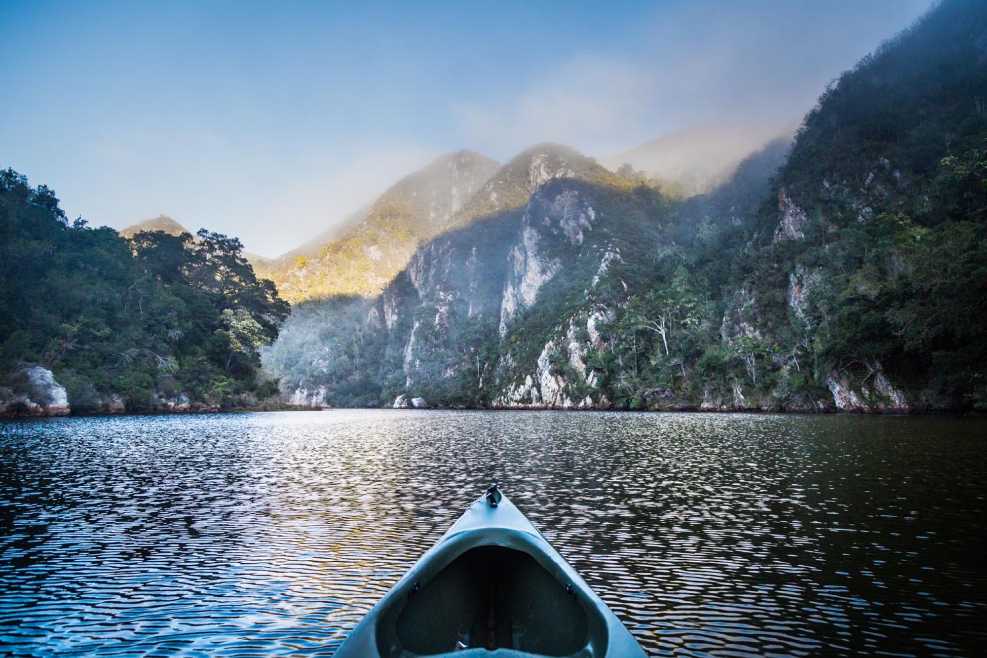The deep silence of the gorge is broken only by the sound of your paddle dipping into the river. Or by the resident fish eagles which call out from their perches high up the yellow woods. Or by the Knysna loeries kok-kok-koking in the forest. Look out for the flash of crimson on their underwings as these furtive, beautiful birds dart across the river to hide away in another tree.