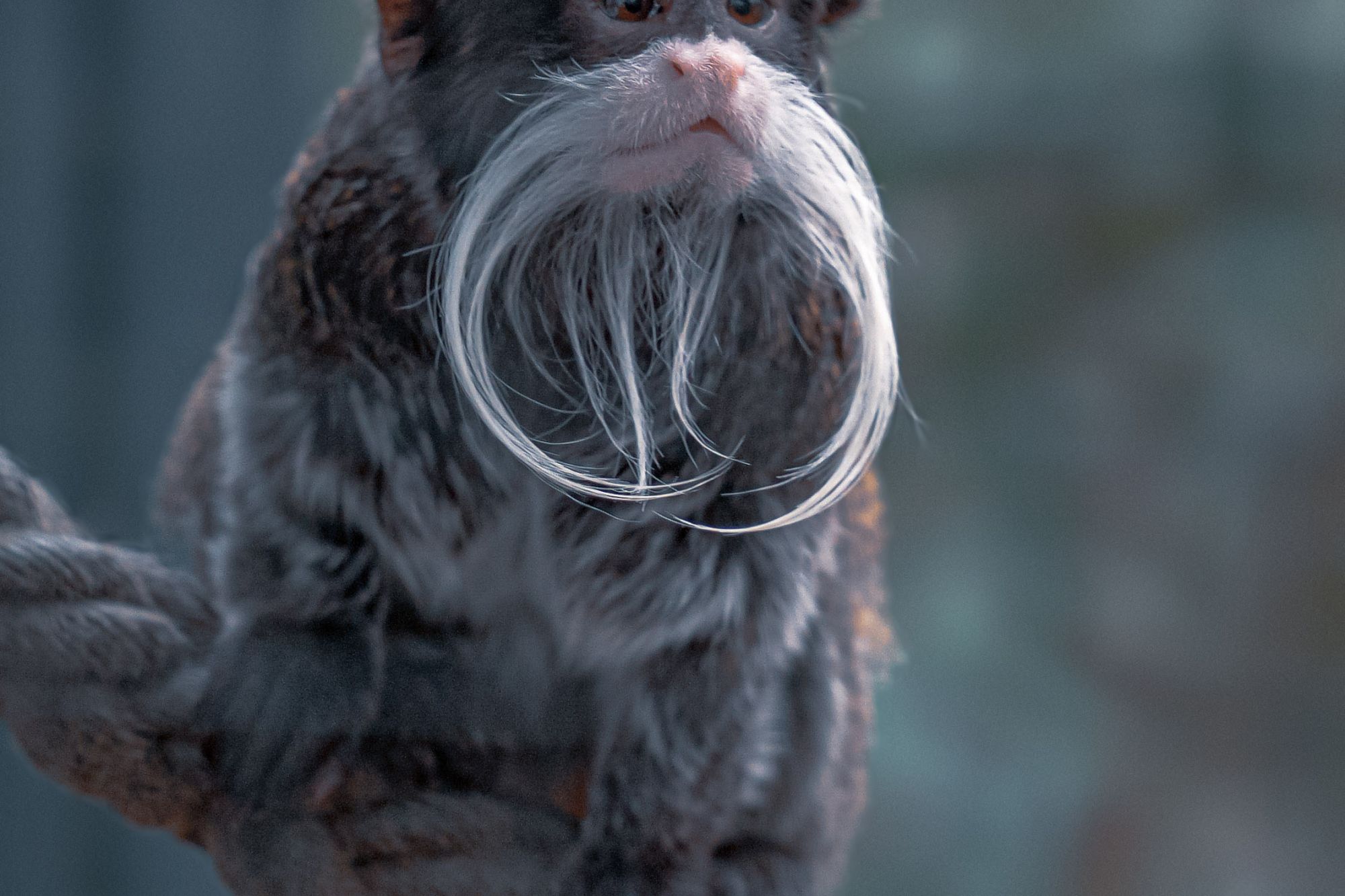 The Emperor Tamarin monkey lives in southeastern Peru, northwestern Bolivia and northwestern Brazil. They are good climbers, will spend most of their time in the trees of the forest and rarely come down to the forest floor. They are active during the day and can be spotted gathering in groups for safety. Their prominent feature of an elongated moustache is like that of the late German emperor Wilhelm II, hence the name ‘Emperor’.