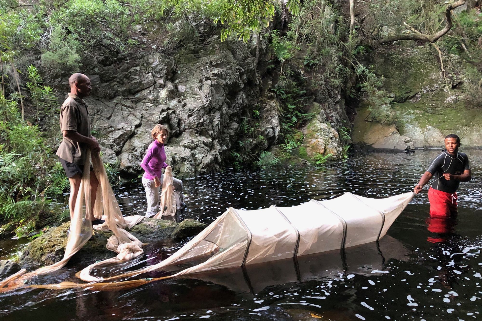 Thanks to an ongoing project funded by the Table Mountain Fund, CapeNature’s aquatic biologists Dr Martine Jordaan and Ms Jeanne Gouws are collaborating with the Grootvadersbos Conservancy to unearth the fishy secrets from the rivers of the Tradouw and Duiwendhoks catchments.