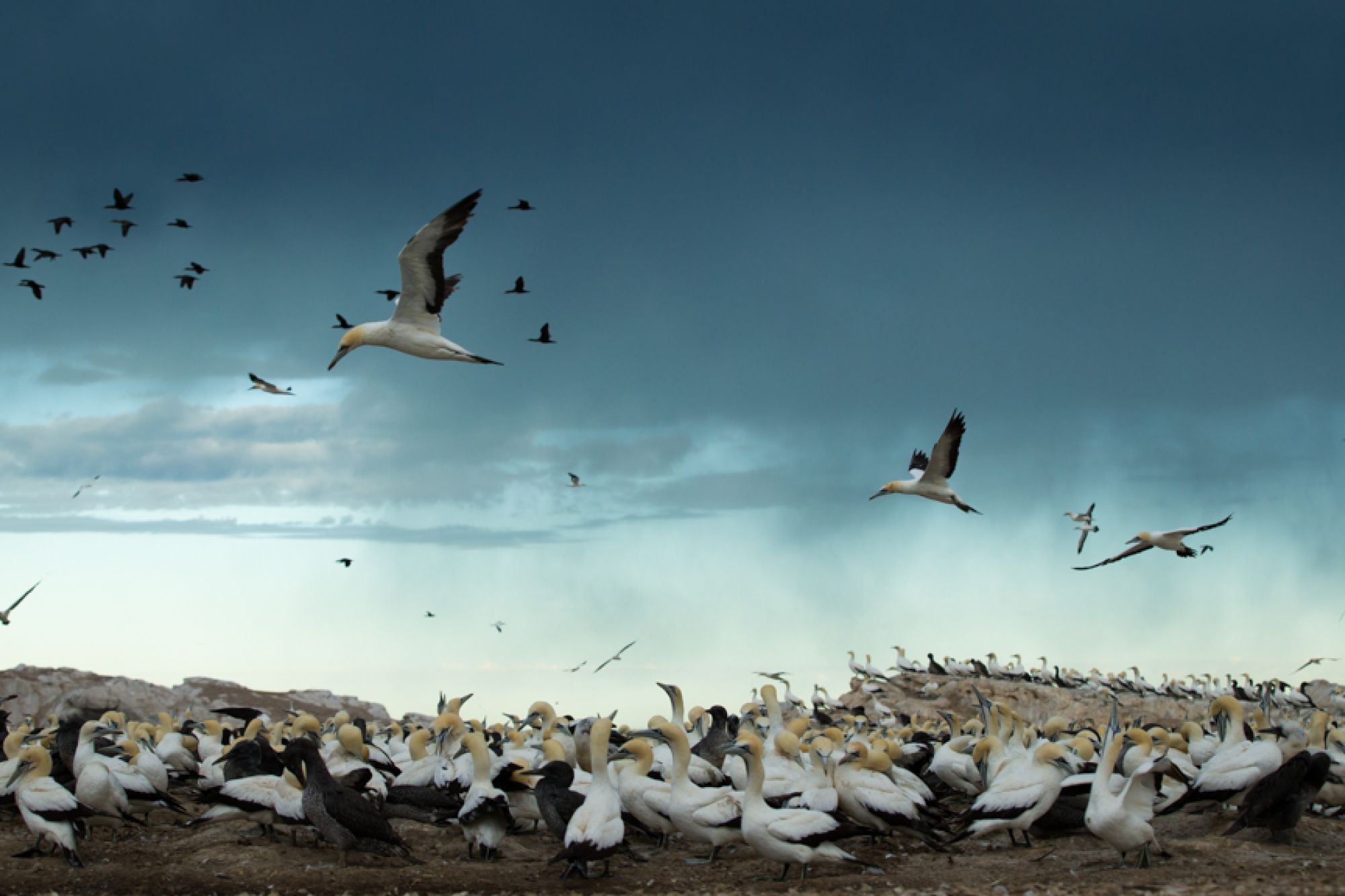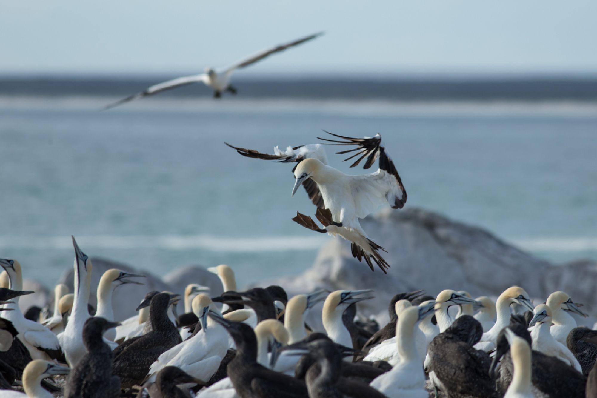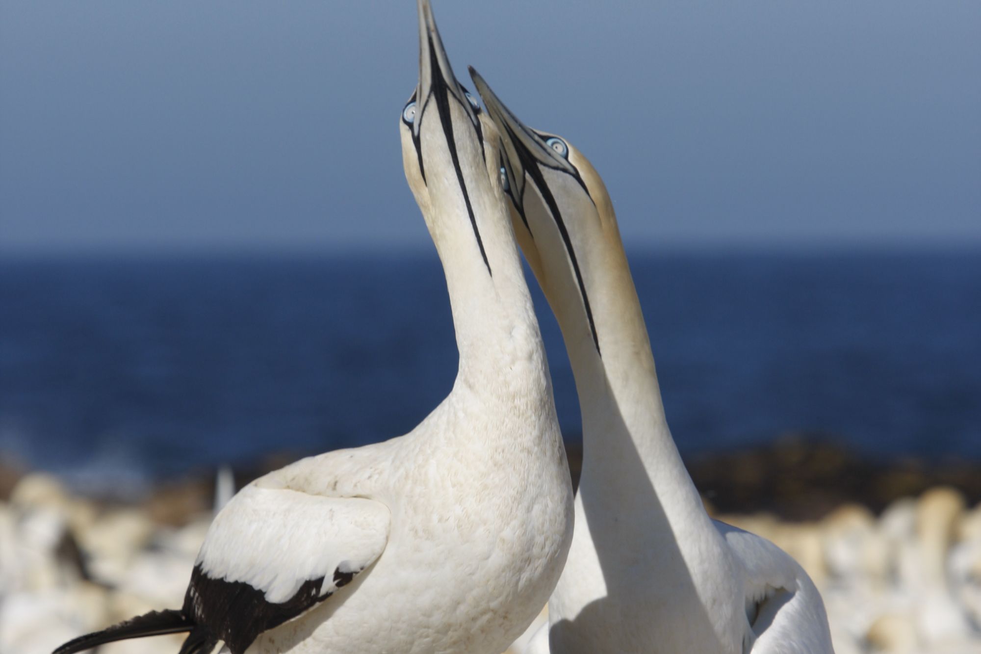 When they hunt, they search for large shoals of fish and plunge from the air onto their surface-dwelling fish prey. They have fine serrations at the tip of their bill to help them catch fish. When they dive they enter the water with such a force (around 40-120 km per hour) that they don’t have external nostrils where water can be forced into. Pollution has a negative impact on them due to poor quality of surrounding waters which negatively affects foraging. Today the rate of decrease of Cape Gannets in their most recent generation exceeds that of previous generation mainly because of the decrease observed at Bird island, Lambert’s Bay and Malgas Island.