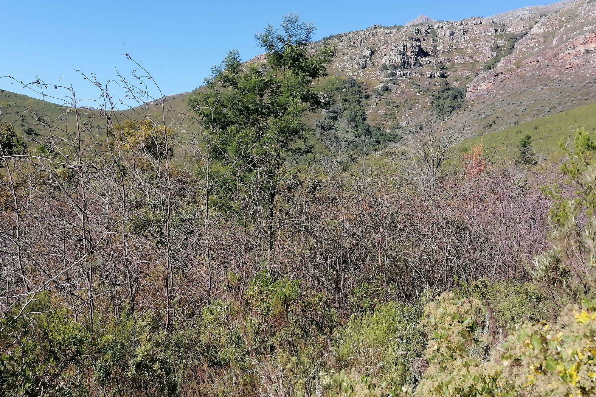 On the 23 rd of July 2020, a biological control assessment of the success rate of a fungus pathogen used as a biocontrol agent on Paraserianthes lophantha (commonly known as Cape Wattle or stink bean), was conducted at Jonkershoek Nature Reserve. Alien Invasive species are detrimental to the survival of indigenous species and overall functionality of ecosystems. Paraserianthes lophantha is one of the most prevalent species at Jonkershoek. This plant competes with indigenous plants for nutrients, sunlight and water which are very crucial for plant growth, nourishment and development.