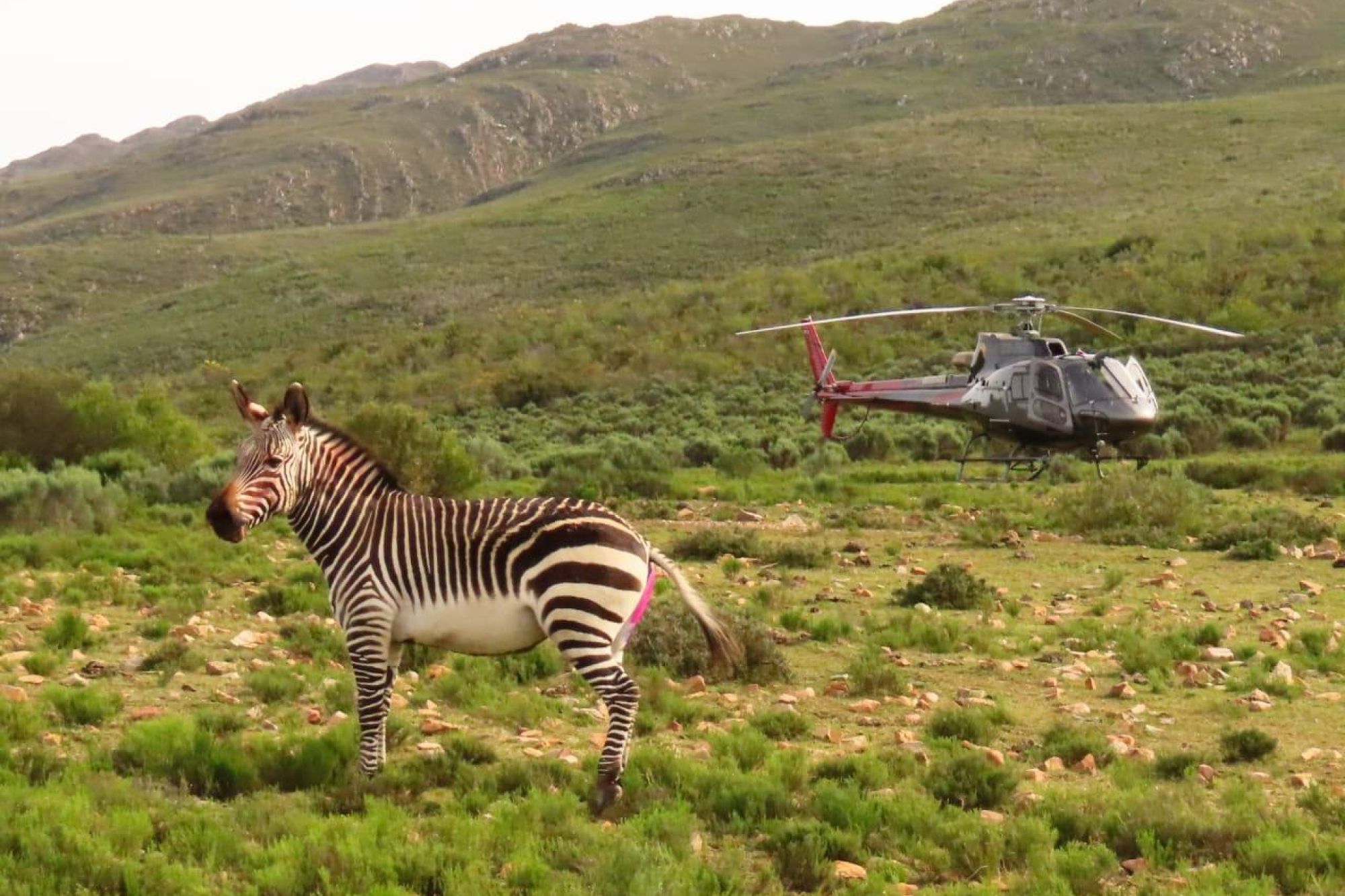 The Kammanassie team, landowner at Diepperivier and Dr Burger (Vet) assisting with the airlifting of the Cape Mountain Zebra at Diepperivier.