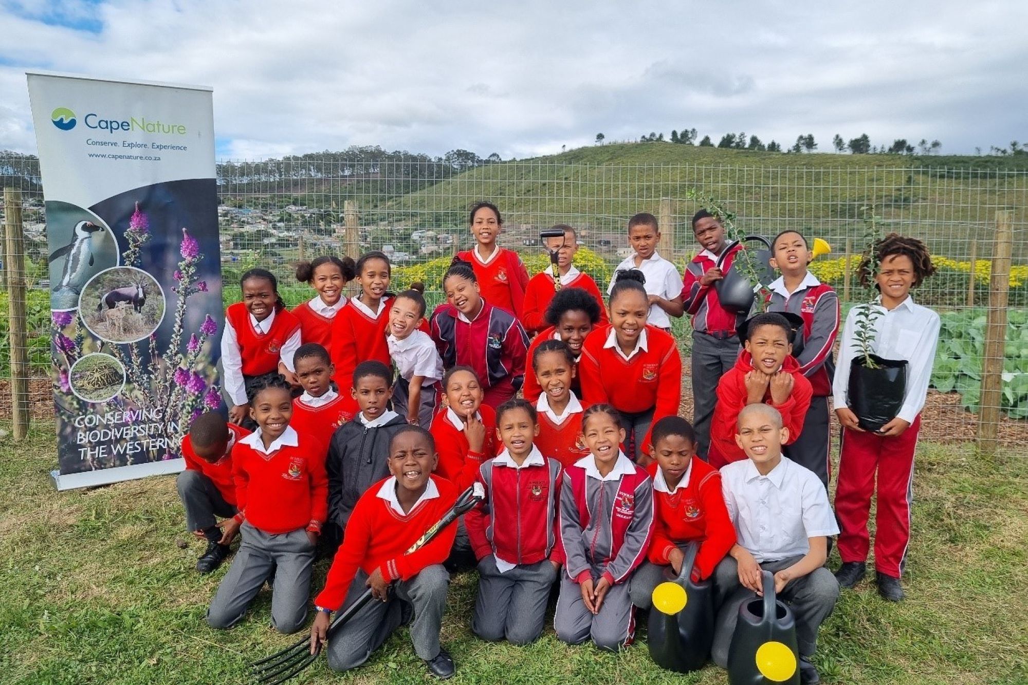 Picture above: Sunridge Primary School receiving garden tools and trees from CapeNature