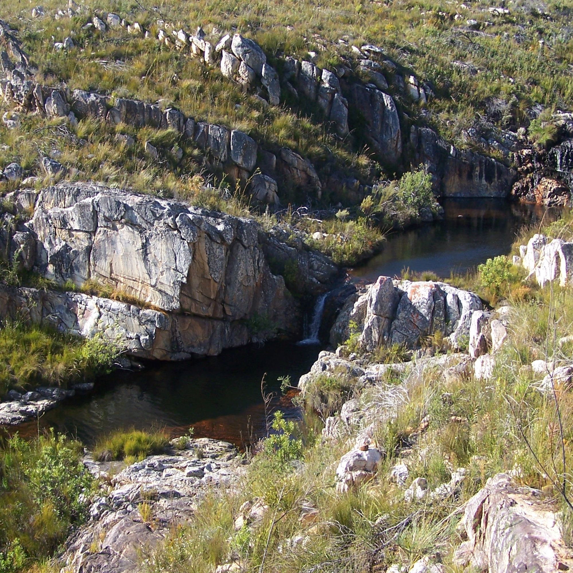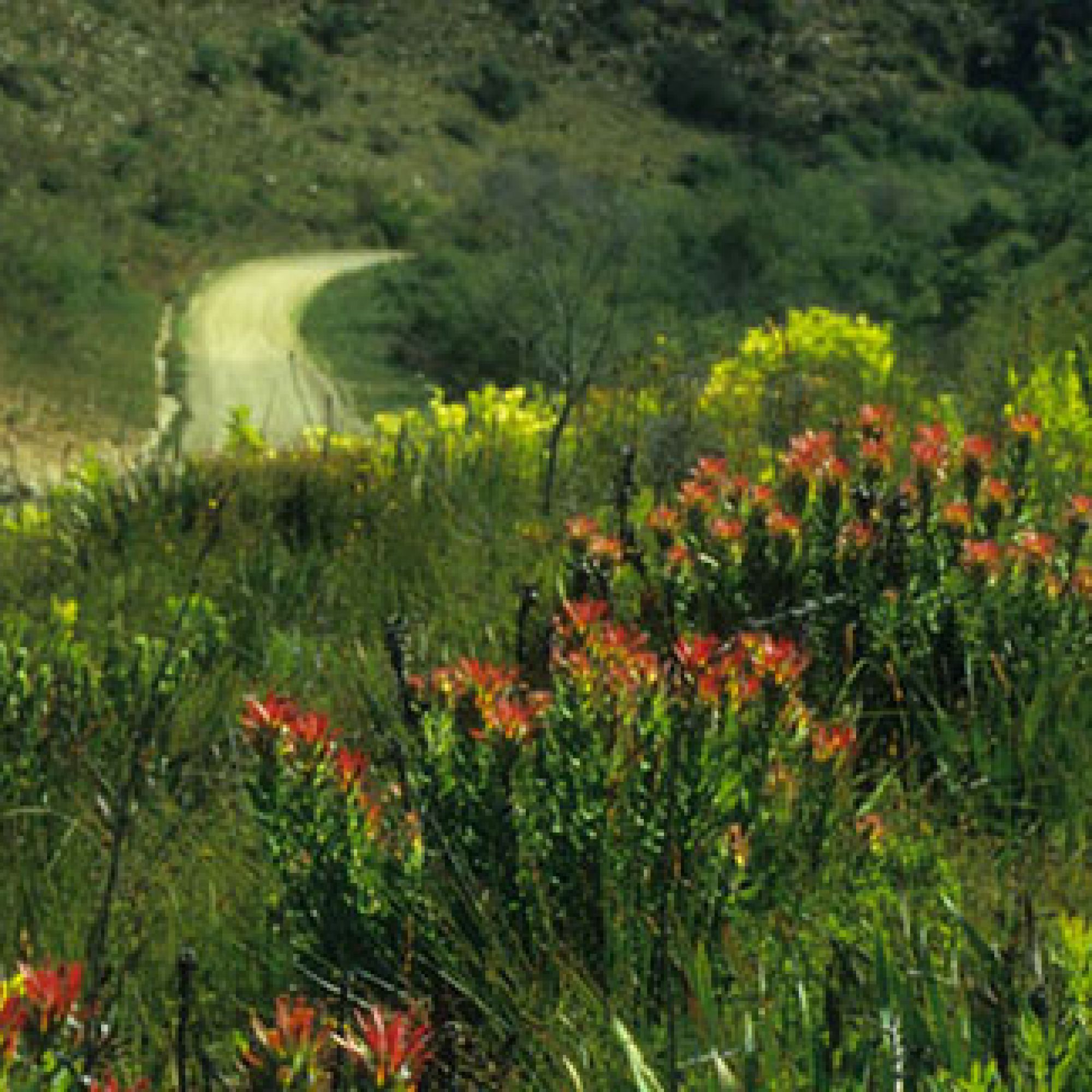 The name Outeniqua is believed to mean “those who bear honey” and is ascribed to the San and Khoi people who once inhabited the mountains. Their rock paintings are found throughout the reserve, depicting animals, hunters and honeycombs. The rugged mountains have long posed a barrier into the Klein Karoo and early settlers in the late 1600s used to follow herds of elephants to find easier ways through the area. The first pass, the Cradock Pass, was built in 1813, but was too steep for many to climb with ox-wagons. The Montagu Pass built in the mid-1800s eventually proved a safer and quicker option. This is a popular walking and hiking destination. Unfortunately there is no overnight accommodation.
